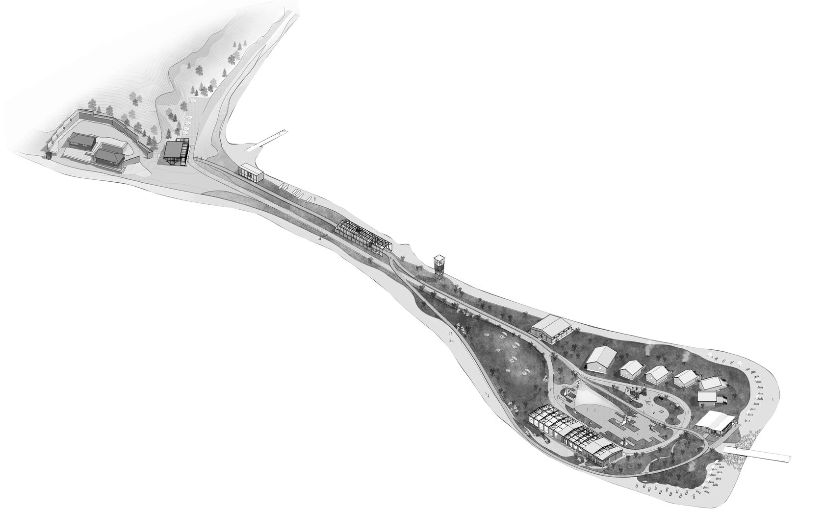 Проект базы отдыха на острове Русский сосредоточен на создании уникального пространства для отдыха на берегу Амурского залива, где смешиваются элементы природного ландшафта и исторического наследия.