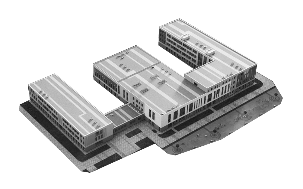 Здание переменной этажности 3-4-х этажное здание с подземным этажом. Композиция представляет собой Ш-образный архитектурный объем, состоящий из трех блоков соединённых между собой.
